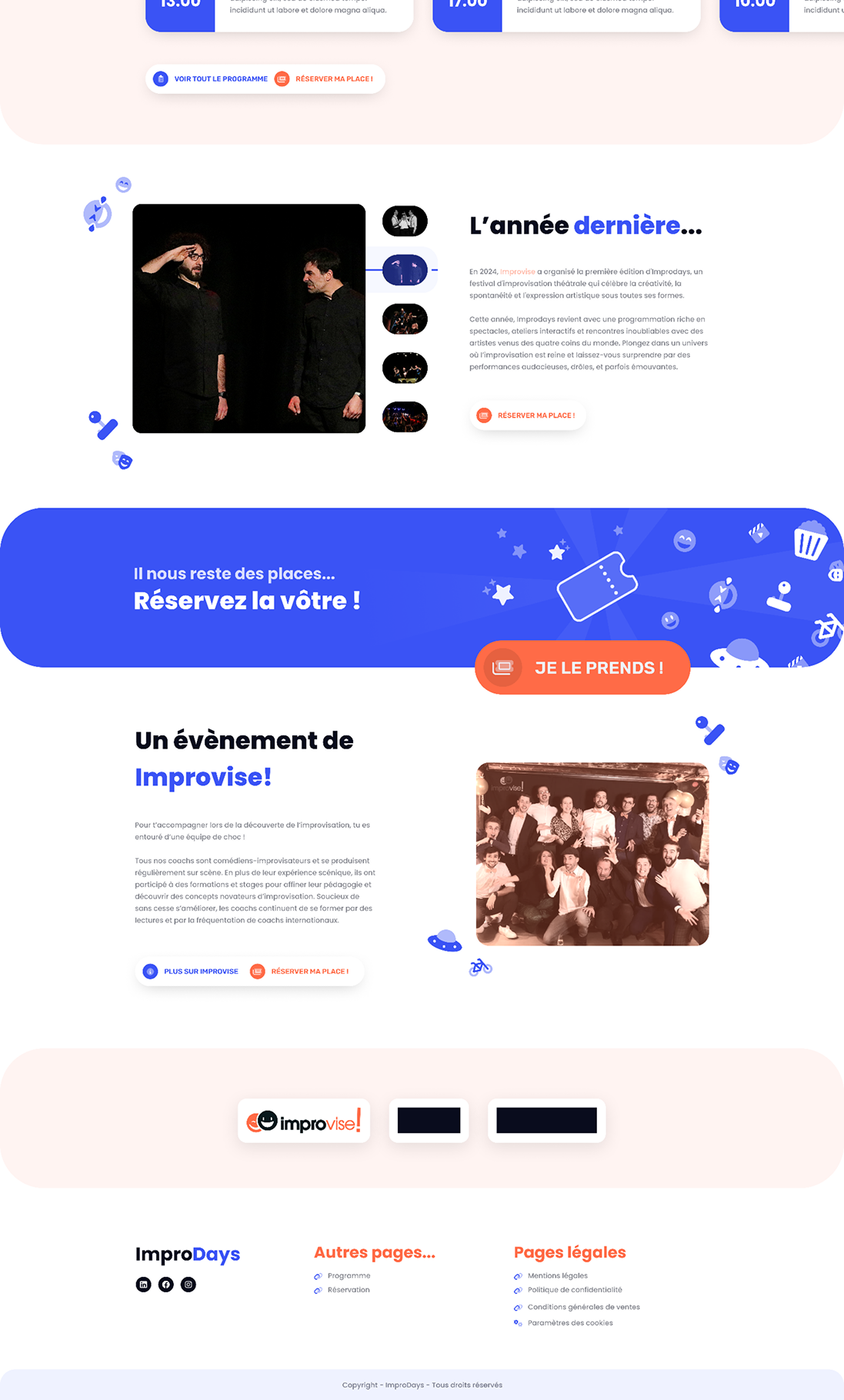 Pour cet événement, les organisateurs y ont mis les moyens pour construire avec moi un site Internet qui représente la qualité de leurs spectacles, mais aussi un univers vibrant dans lequel vous voyagerez entre rire et fous rires.